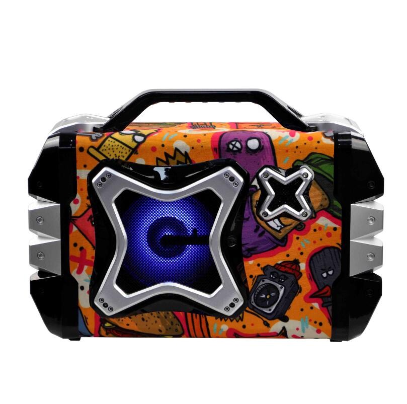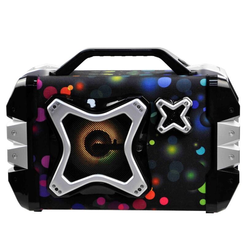 2.0 channel with Super Bass EQ,Compatible indoor and outdoor usage,Colorful LED light with fashional appearance.